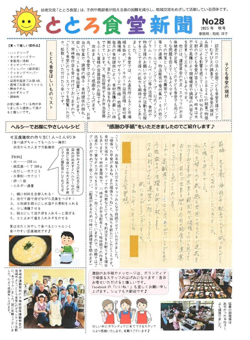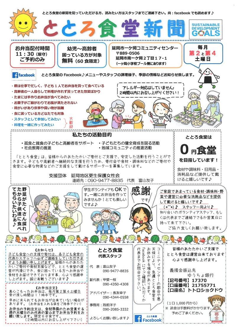 コミニティーセンターの都合や悪天候により、急遽ととろ食堂をお休みする場合があります。Facebookにてご確認いただくか代表までお問い合わせください。予めご了承ください。