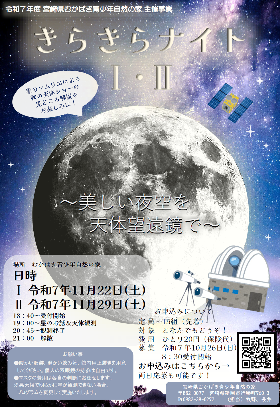 ※悪天候で明らかに星が観測できない場合は、プログラムを変更して実施いたします。